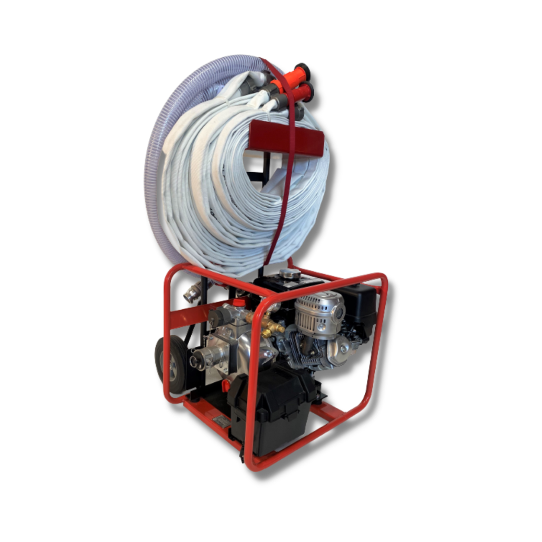 Portable high-pressure water pump package for residential, rural, and resort wildfire protection using water from a pool, water tank, or pond. Can be combined with Fire Retardant Foam and/or Gel products for effective wildfire protection. Not recommended for use with salt water.